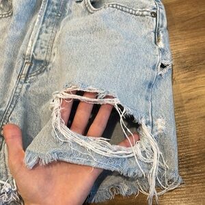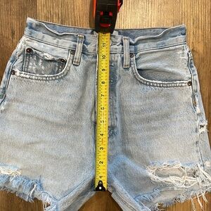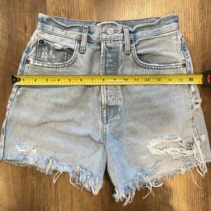 Women’s size 25 AGOLDE Riley denim jean shorts. High rise, button up, 100% cotton (no stretch), 4inch inseam.