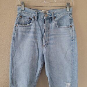 AGOLDE Riley Straight Jeans Size 25 Medium Wash High Rise Button Fly Distressed
