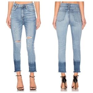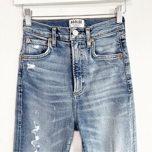 AGOLDE Ruby Super High Rise Slim Straight Jeans Two Tone Distressed 24