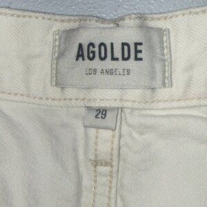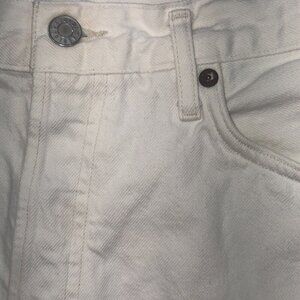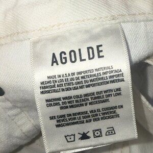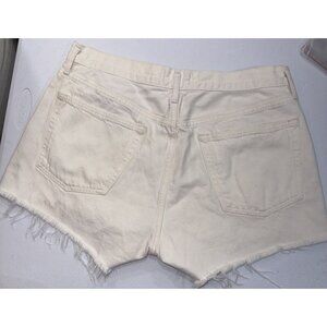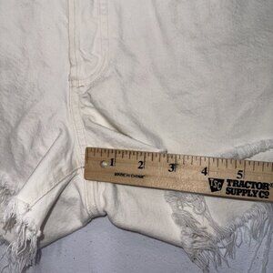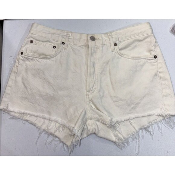 AGOLDE Shorts Designer White Denim Cutoff Parker Distressed Bottoms Preppy Boho Jean Shorts Women’s size 29. In excellent preowned condition with frayed distressed edges along the hem and button fly. Top Materials Tag says made in the United States from imported materials but the bottom tag says made in Turkey from imported materials.