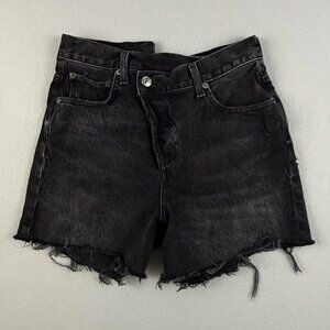AGOLDE Shorts Women's 26 Black Criss Cross Button Fly Hitchhike Denim Organic