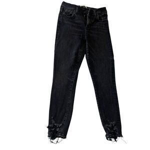 AGOLDE Sophie Crop High Rise Black Denim Raw Hem Skinny Leg Jeans Size 28
