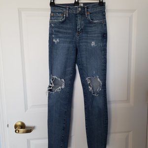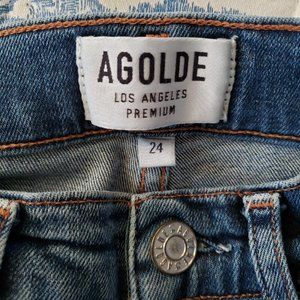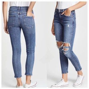 AGOLDE Sophie High Rise Distressed Cropped Medium Wash Skinny Jeans Size 24.