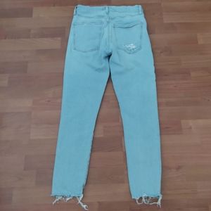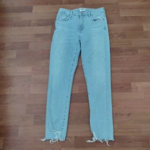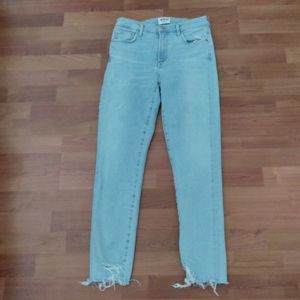 AGOLDE Sophie High Rise Skinny Crop Jean. Hi Rise Skinny Crop. Light blue wash with whiskering through the leg and distressed details. Stretch. Size 28