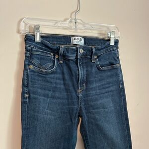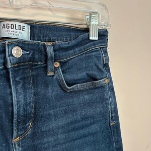 EUC pair Sophie High Rise Skinny Crops from AGOLDE in a size 26. These jeans are a nice dark wash in the color Starland. Cropped length. No stains or flaws!