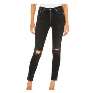 AGOLDE Sophie Mid Rise Distressed Skinny Jeans Washed Black 27