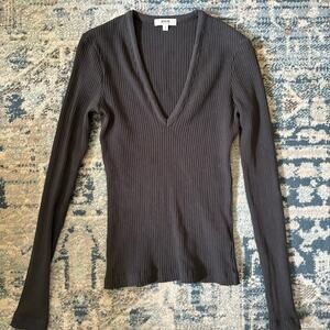 Super cute AGOLDE Tavi V-Neck Top Long Sleeve Ribbed Knit.