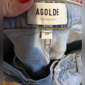 The AGOLDE Toni High-Rise Slim Denim Jean in Daylight Light Wash Size 29 is a stylish and versatile pair of women's jeans with a mid-rise and slim fit. Made from a blend of cotton, spandex, and other materials, these jeans feature a 5-pocket design, zip closure, and a trendy skinny style. The light wash color adds a classic touch, while the brand's reputation for quality and design makes these jeans a fashionable choice for any season. With a 27-inch inseam and a size 29 waist, these AGOLDE jeans are designed for a flattering and comfortable fit.