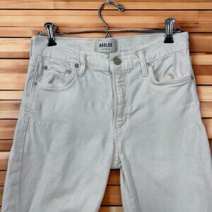 AGOLDE Toni Jeans Women’s 27 High-Rise Straight Cropped White Stretch Raw Hem