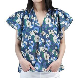 Top shows no stains or holes. Does however have a snag on middle of back as seen on pictures 11-12. Hard to notice due to print. Otherwise beautiful print, lightweight , soft and stretchy an awesome find!