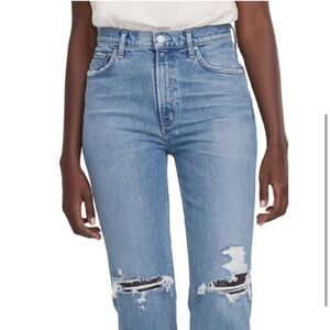 Elevate your style with these classic blue distressed jeans. Perfect for a casual day out, these jeans offer comfort and a trendy look.