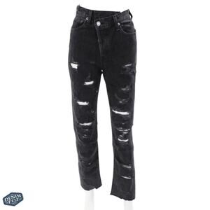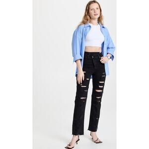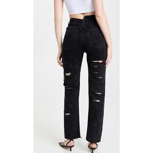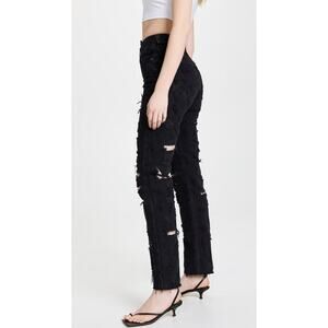 AGOLDE Women’s Feverish Black Distressed Criss Cross Straight Leg Denim Jeans