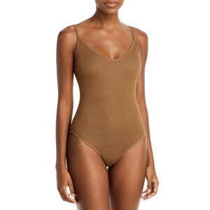 AGOLDE Women's Rib Tank Bodysuit V Neck Sleeveless Toffee / Nude S M L NWT USA