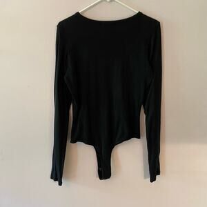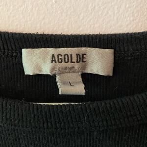 AGOLDE Women's size Large Black Long Sleeve Bodysuit. AGOLDE brand women's bodysuit in a size large. Black colorway. Stretchy material. Long sleeves with snap at the bottom. Measurements as pictured. Missing snap. Otherwise in great pre-owned condition, see photos for more details.