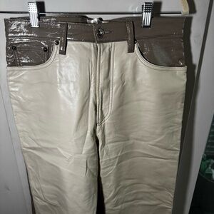 Paneled 90's Pinch Waist in Powder Recycled Leather & Quail Recycled Leather