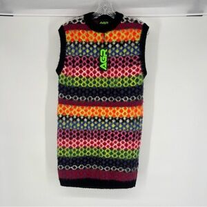 AGR Argyle Knit Colorful Sleeveless Mohair Mini Sweater Vest Dress Small NWT