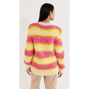 AGR Fluro Hand Knit Crew Neck Sweater Pink Yellow Stripe Wool Medium Oversized