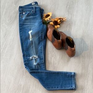 AG Stevie Ankle Slim Straight Distressed Jeans Stretch Medium Wash Blue 26
