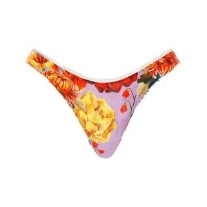 Agua Bendita - Bouk Pair with the Lina Reversible Top Avy reversible bikini bottom from our Bouk collection. A print made with hand-drawn retro floral illustrations created by our in-house artists inspired by botanical flower bouquets and the summer of the 1960s. This bikini bottom is reversible to a second print, from white to lilac: spot print and sublimation technique with handmade details for a feminine look.