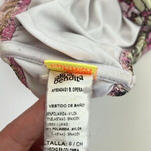 Fun yellow and pink tropical floral pattern with embroidered roses
