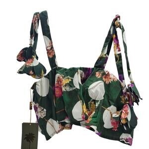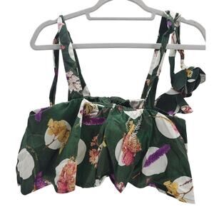 AGUA De Coco Cropped Blouse w/Lacing Floral Print, Size Small