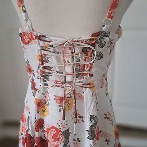 AGYMNX Floral Strap a-line sundress cami midi tie up front lace up back L NWT