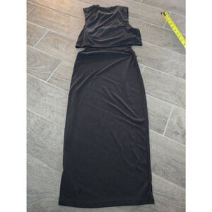 A'gaci Ribbed Midi Maxi Bodycon Dress. Bust area has a cropped looser over shirt. Above hip cutouts. Lightweight. Dress this up or wear is casually. Has stretch, size large, but could probably fit a medium as it's form fitting, but please review approximate measurements.