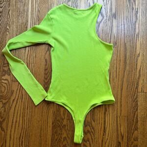AGolde Bea Asymmetric Cutaway Thong Bodysuit Lime Green Thumb Hole Size Large