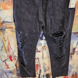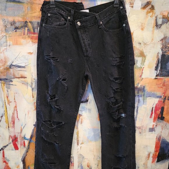 AGolde Destroyed/Distressed Criss Cross Waist Jeans in Feverish Wash Black