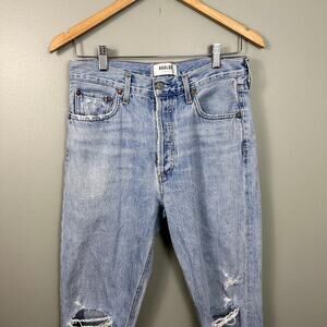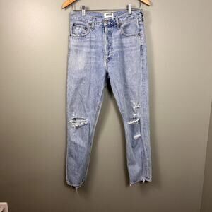 AGolde Jamie High Rise Jeans Light Wash Blue Denim Distressed Ripped size 27