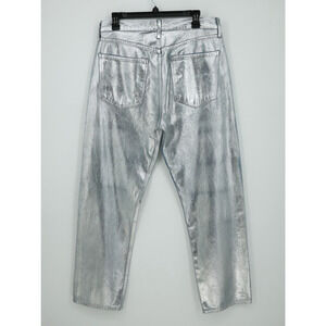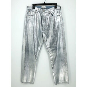 AGolde Jeans Women's 30 Waist Silver 90s High Rise Straight Leg Button Fly Pinch Waist High Rise Coated Denim