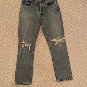 Straight/slim leg medium wash Agolde jean with knee rips size 27