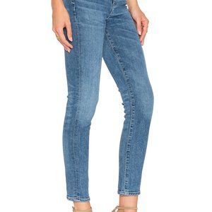 AGolde Skinny Crop Jeans. Size 24. Color Adore. Barely worn. 98% cotton, 2% spandex. Front and back pockets. Light fading and whiskering along front. 12" at the knee narrows to 10" at the leg opening.