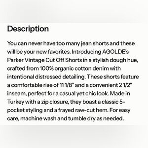 AGolde Vintage Cut Off Shorts Size 32 NWT
