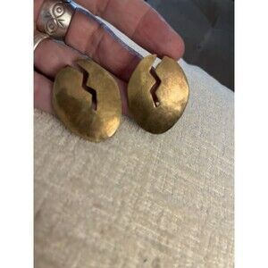 AH Anne Hellman Large Abstract Brass Artisan Brutalist Earrings Pierced Signed