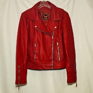 A&H Apparel Womens Red Biker Streetwear Genuine Leather Jacket Size 2XL