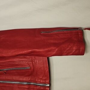 A&H Apparel | Womens Red Biker Streetwear Genuine Soft Leather Jacket | Zip front closure - 2 zip front pockets - zip sleeve cuffs | Silver-toned hardware | fully lined | Excellent/like new pre-loved condition | Size 2XL