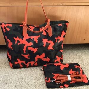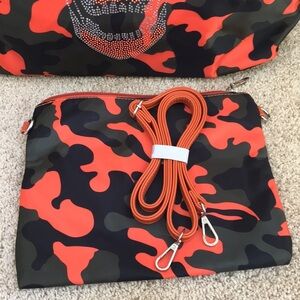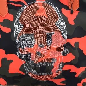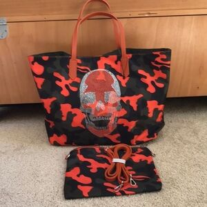 ah-dorned New York rhinestone skull two piece camo nylon tote with pouch and detachable straps . NWOT!