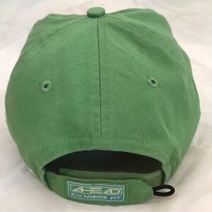 B2 Hat/Cap AHEAD Extreme Fit Adult Adjustable Hook & Loop Strap Catch The Spirit on face and USGA on side in Navy Blue and RBS on side in ReflexBlue and AHEAD logo rear quarter in white and AHEAD patch rear strip in Blue White+ loop at end of strip / offwhite front dome and light green rear dome and bill