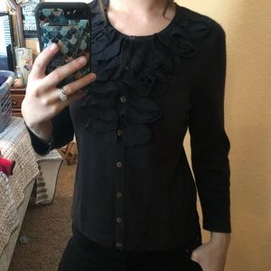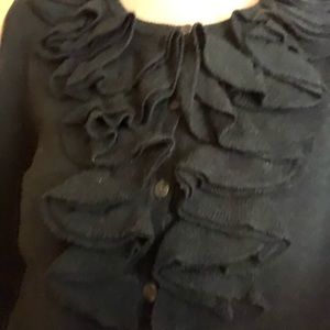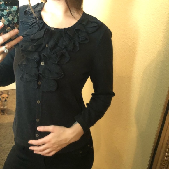 So beautiful with the ruffles!! It’s a size medium joneswear cardigan dark gray
