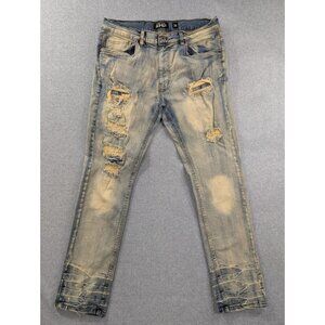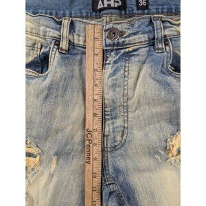 AHP Another Hype Piece Jeans Mens SZ 36 Blue Distressed Whiskers Slim Straight