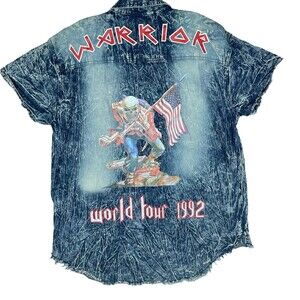 AHP Another Hype Piece Warrior Band 92 World Tour Shirt Distressed Button Up XL 100% Cotton No Tears Stains or Holes All buttons intact