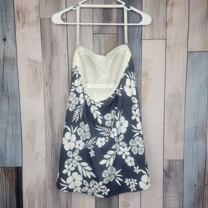 A&H Sportswear Gray White Floral Halter One Piece Swimsuit Dress Size 12