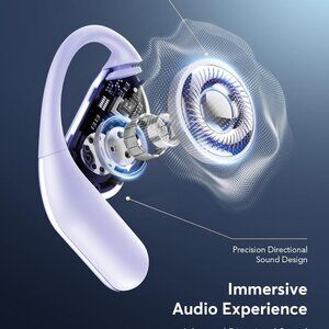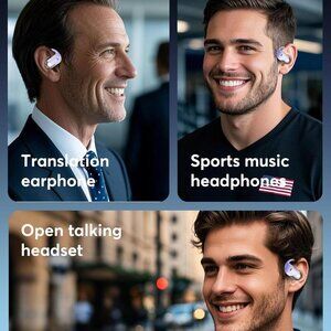 [Open-Ear Design for Comfort] Made of lightweight PC material, each earbud weighs only 8g and is IPX7 waterproof. The soft silicone ear hooks provide a secure fit, making them ideal for sports, workouts, and daily activities. Enjoy music while staying aware of your surroundings with these versatile earbuds.