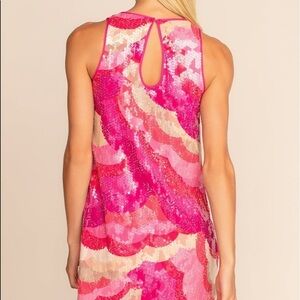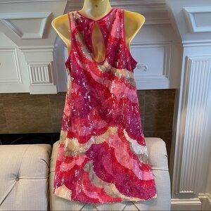 Trina Turk Kaleidoscope Shimmering sequins Pink& Beige Dress Sz 2 Print crafted in shimmering sequins. Back closure with keyhole Good used condition