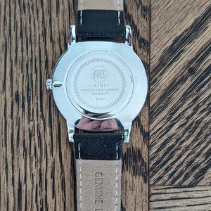 AIBI Men`s Classic Silver Simple Analog Quartz Date Black Watch with Leather Strap Unisex