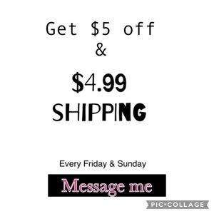 weekend shipping special $4.99 every Friday/Sunday(must message me to receive a discount)