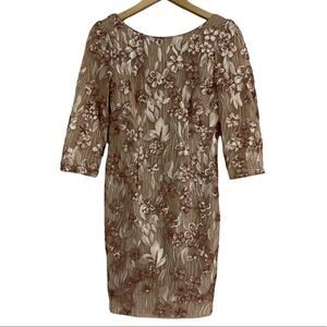 AIDAN AIDAN MATTOX Floral-Embroidered Sequin Dress Cocktail Champagne Size 4