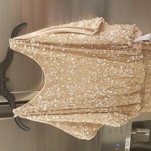 💕AIDAN MATTOX💕 Cold Shoulder Sequin Mini Dress Cocktail Dress Light Gold 6 NWT