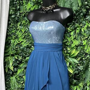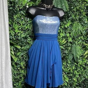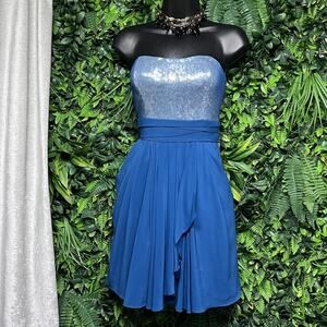 AIDAN MATTOX Dress Women 6 Teal Silver Sequin Strapless Pleated Tiered Mini 2810